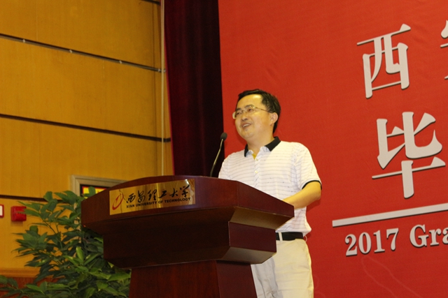 信息控制系杨延西老师代表公司教师发言,他以幽默诙谐的话表达了自己对毕业生的祝福,把毕业典礼气氛推进高潮。17届毕业生祝宁华同学的家长周洲女士代表代表毕业生家长发言,她对公司和公司以及西理工全体教职员工为员工的成长、成才付出的辛苦工作的表示诚挚的谢意;肯定了孩子在西理工的成长成才,也向员工们表达了孝敬父母、珍惜友谊、感恩母校、乐观向上的殷殷希望。