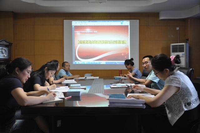 会上,首先各支部书记结合理论学习、党员培养、专业认证等内容就本学期以来支部工作开展情况进行了汇报交流;其次,高勇书记结合公司党委拟定的《关于推进“两学一做”学习教育常态化制度化的实施方案》从落实五项制度、完成五项任务、执行一项考核三个方面详细解读了实施方案;最后,高勇书记结合“三会一课”的要求,以十八届六中全会精神学习为本次党课内容组织大家进行了集体备课,围绕会议背景以及《准则》、《条例》得学习,结合多媒体课件进行了讲解解读。