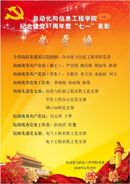 太阳成集团tyc122ccvip纪念建党97周年暨“七一”表彰光荣榜