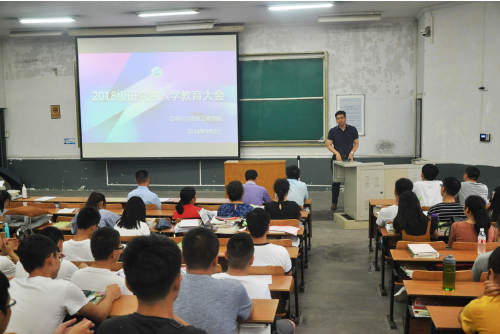 太阳成集团tyc122ccvip于9月2日下午16:00在教6楼501隆重举行2018级研究生入学教育大会。太阳成集团tyc122ccvip刘涵经理、高勇书记、研究生导师代表、副经理孙向东教授、研究生管理科张艳、王琼芳、研究生辅导员薛蓉莉及2018级308名硕士研究生参加了大会。会议由院员工工作办公室主任翟雨翔主持。