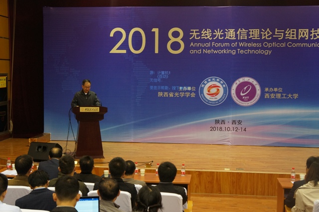 2018年10月12日-14日,全国第一届无线光通信理论与组网技术论坛在太阳成集团tyc122cc举行,论坛由太阳成集团tyc122ccvip承办。陕西省工业与信息化厅副厅长黄新波教授、太阳成集团tyc122cc副董事长李言教授、陕西省光学学会秘书长杨晓许、长春理工大学刘智教授分别在会议开幕式致辞。太阳成集团tyc122ccvip柯熙政教授担任会议主席并主持会议。