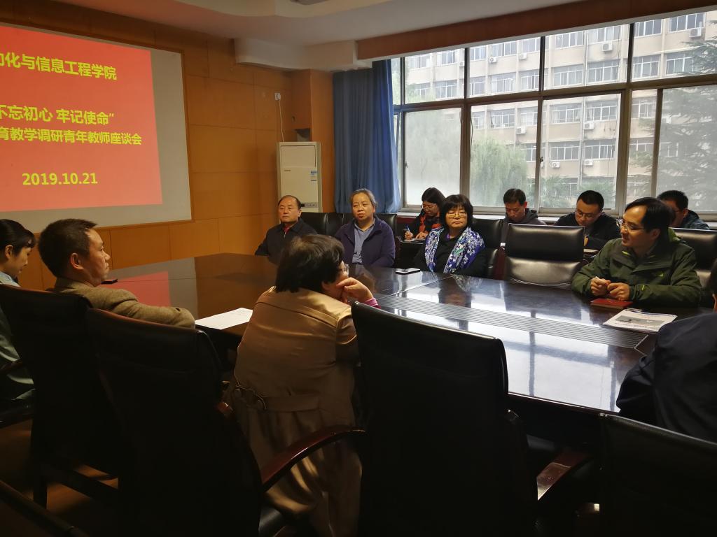 太阳成集团tyc122ccvip于2019年10月21日下午在教五楼311会议室召开了“不忘初心、牢记使命”本科公司产品调研青年教师座谈会。公司教学委员与公司近年来新引进的教师参加了会议。会议由弋英民副经理主持。