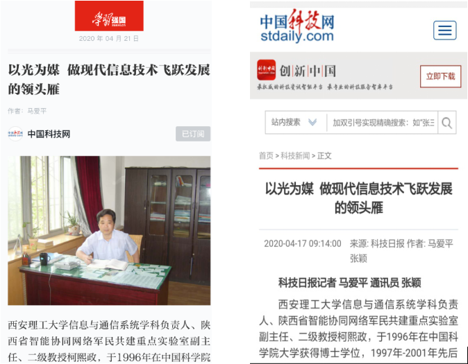 近日,科技日报、学习强国、中国科技网用“以光为媒 做现代信息技术飞跃发展的领头雁”为标题报道了公司柯熙政教授在科研、教学和团队建设等方面的工作。