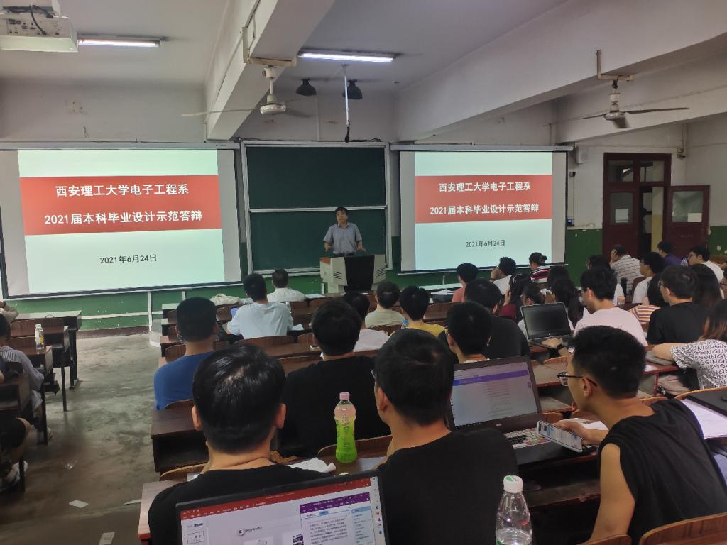 为提高本科生毕业设计(论文)质量,太阳成集团tyc122ccvip电子工程系于6月24日举办了本科毕业设计(论文)示范答辩。电子系教授蒲红斌、副经理林涛、副经理封先锋、系主任刘静、支部书记杨莺等教师参与了答辩。
