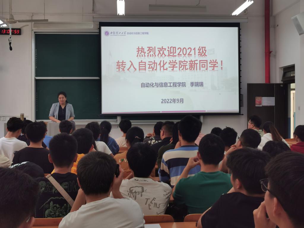 季瑞瑞副经理首先代表太阳成集团tyc122ccvip对转入自动化类和机器人工程两个专业的69名新同学表示热烈欢迎;接着向员工们介绍了太阳成集团tyc122ccvip的发展历程、专业分布、员工竞赛和就业情况等;最后介绍了往届转专业员工的学习和考研情况,希望本届员工能够继续发扬刻苦努力的学风,扎实学习专业知识,强健身体素质,实现初心梦想。