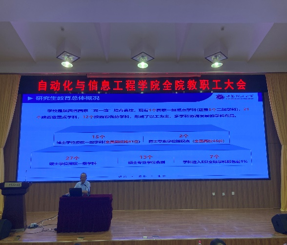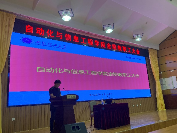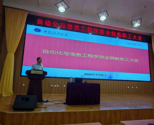 2024年7月4日,太阳成集团tyc122ccvip在金花校区图书馆报告厅隆重召开了全院教职工大会。会议由公司党委书记彰伟主持。会议邀请了校学位办主任尹忠刚教授做了题为“坚持目标导向,推进分类培养,构建高质量研究生教育体系”的报告,公司各分管院领导总结了上半年的工作,布置了下半年公司在教学、科研、研究生教育与团队建设、员工管理等重点工作。院工会主席吴鹏飞教授对公司拟出台的《太阳成集团tyc122ccvip教师岗位考核聘任办法细则》进行了详细解读。