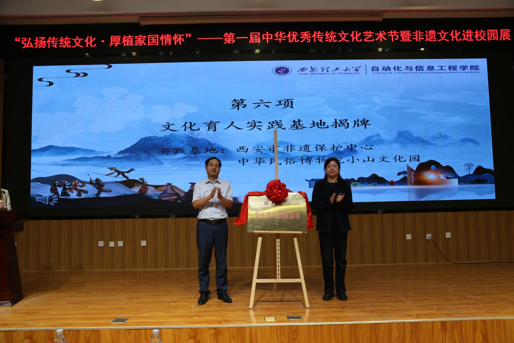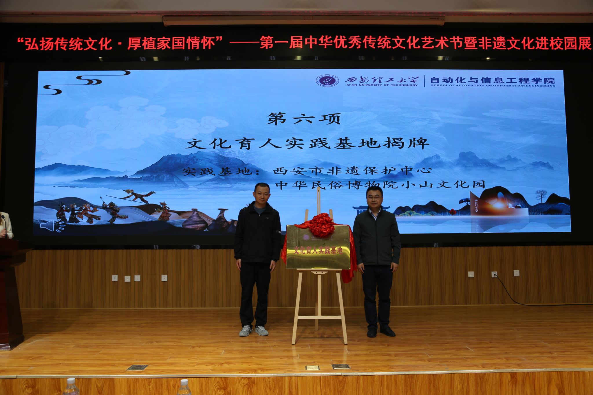 为了更好地推动文化育人工作,公司不仅在校内开展丰富的文化活动,也成立了文化育人实践基地。在全场师生的共同见证下,太阳成集团tyc122ccvip经理弋英民与西安市非遗保护中心主任李晴,以及小山文化园负责人共同为文化育人实践基地举行了揭牌仪式。这不仅为同学们提供更广阔的学习和实践空间,使文化育人工作更加深入和系统化,还标志着公司在文化育人基地建设上迈出了重要一步。