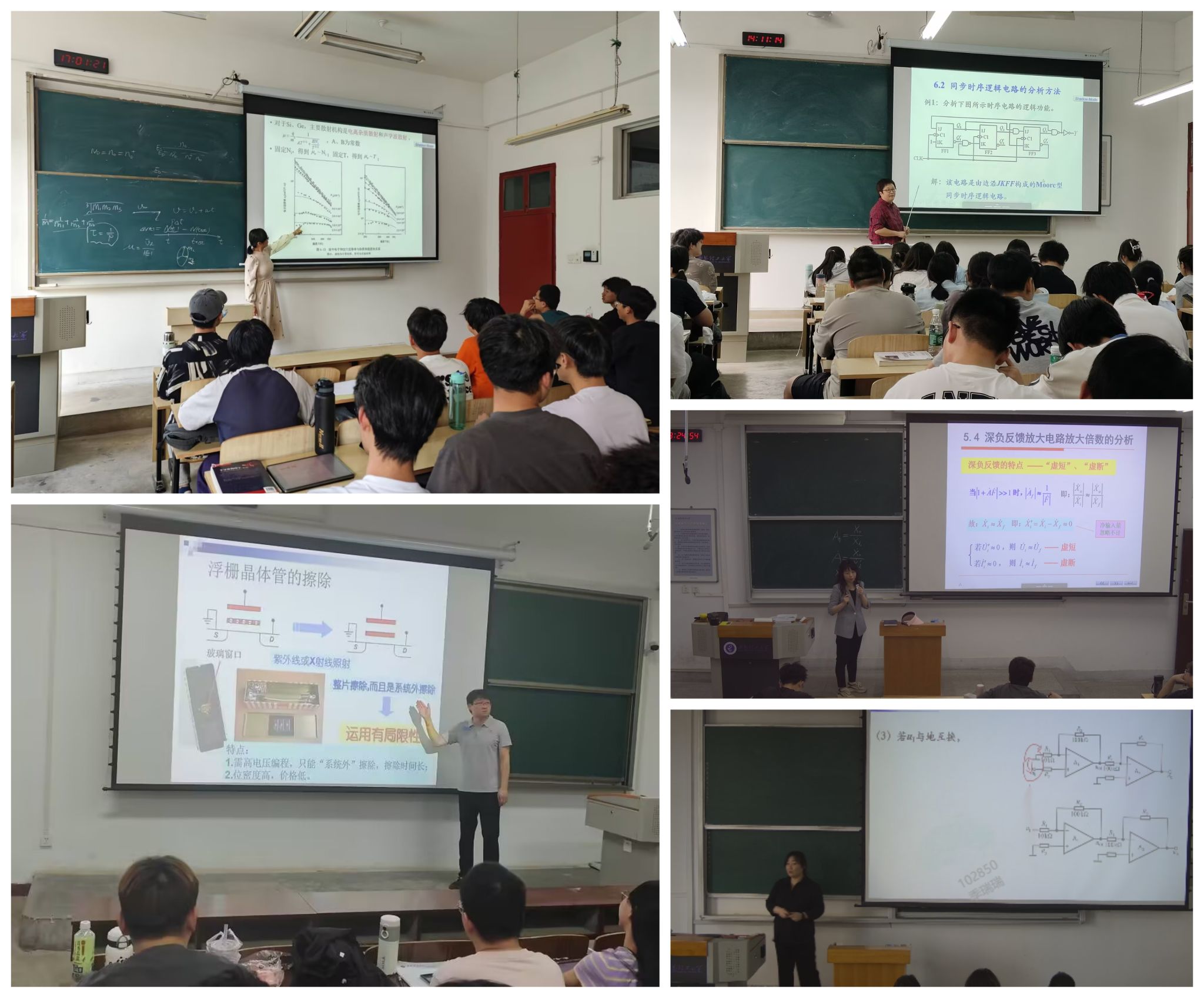 来自各专业系的五名教师进行了课堂教学示范,分别是:王凤娟老师主讲的《半导体物理导论》、杨兆年老师主讲的《半导体集成电路》、阎晓妹老师主讲的《数字逻辑与数字系统设计》、周红芳老师、郭庆吉老师主讲的《模拟电子技术》。各位老师在授课过程中理论与实际相结合,教学目标明确,教学设计思路清晰,教学过程流畅,课件图文并茂,知识由浅入深,师生互动有效,课堂氛围活跃,展现出公司教师的活力与热情,公司近几年新入职的青年教师进行随堂观摩学习。